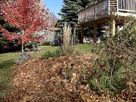 Anyways, going back to the blog...An image of the backyard vegetable garden with leaves I raked on last week. The leaves will protect the plants and also provide compost to loosen the soil.