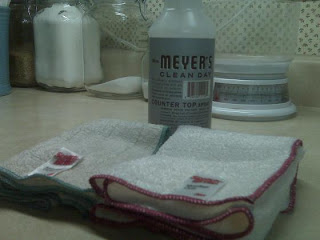 In order to decrease the use of paper towels in the kitchen I've finally purchase a set of 3M branded microfiber towels. I hope these replacement towels will last a looooong time. Like paper napkins, I find paper towels an evil, yet necessary waste. In addition, we use Mrs. Meyers All-Purpose Cleaners to wipe the kitchen counter area and dining room table. As an added bonus, Mrs. Meyers product are biodegradable and phosphate-free!