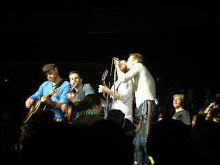 A photo from the recent Coldplay concert that I attended...BUT it was not a photo that I took. The image is from a friend's daughter who was also at the concert. The photo is of the band when they wandered to the our end of the arena and played The Scientist and Death Will Never Conquer (according to my son). We were one section above the band while this image, as you can see, is just a few rows away from the band! Thanks Stan!