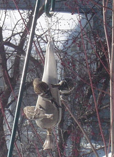 This afternoon I identified a pair of Common Redpoll at our bird feeder. The bird feeder is a nyger seed sack that has seen a large number of birds today.