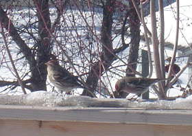 - Common redpoll -- Sunflower pieces, nyger seed, suet.